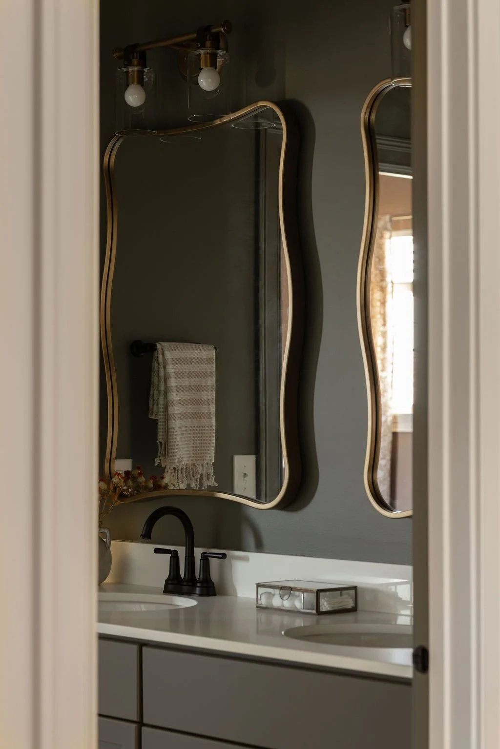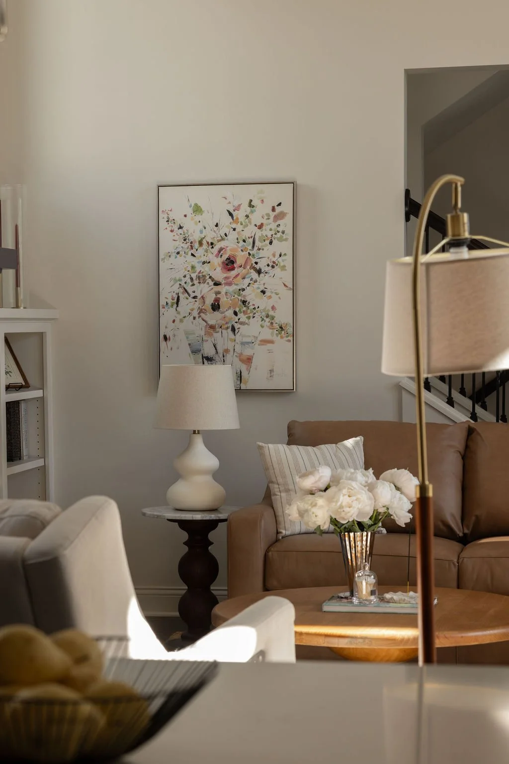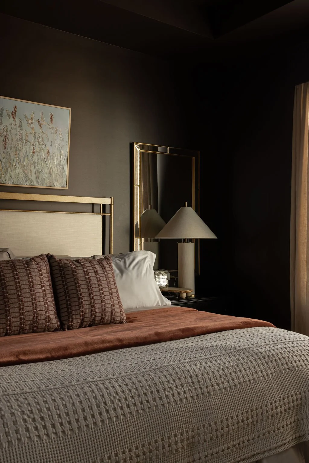 We took a blank slate new build that was previously drenched in gray from head to toe & brought in depth, softness & a cozy upscale feminine touch. By painting truly every single surface, updating carpets, all lighting, furniture, fixtures & adding molding throughout - we were able to take something cold and infuse it with warmth.